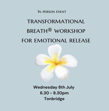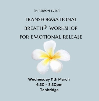 During this 2 hour workshop you will be guided through the breathwork techniques that can help to release stored tension, trapped emotions and calm an anxious brain.